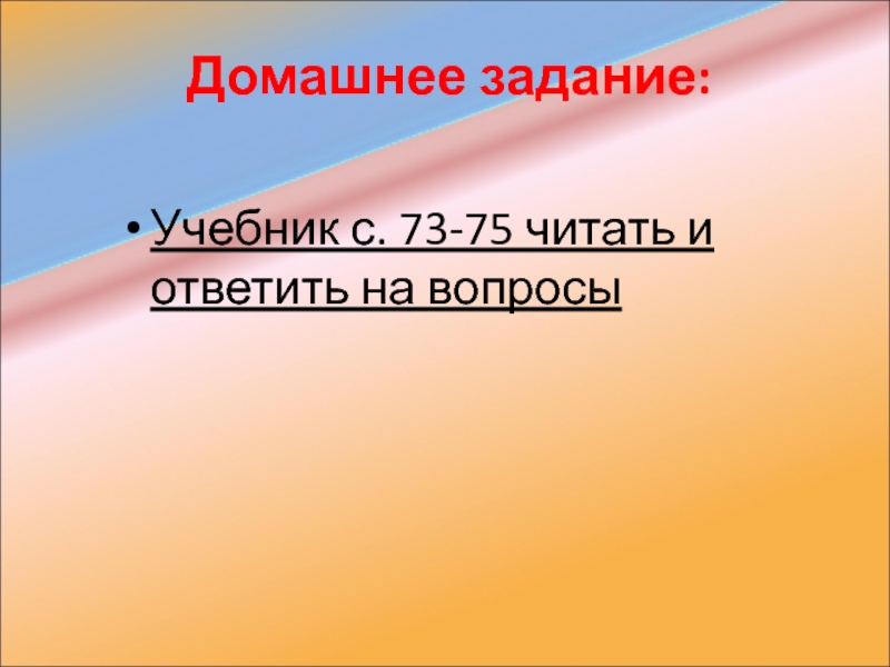 Домашнее задание:Учебник с. 73-75 читать и ответить на вопросы