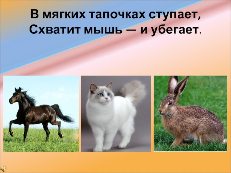 Слайд 7В мягких тапочках ступает, Схватит мышь — и убегает.