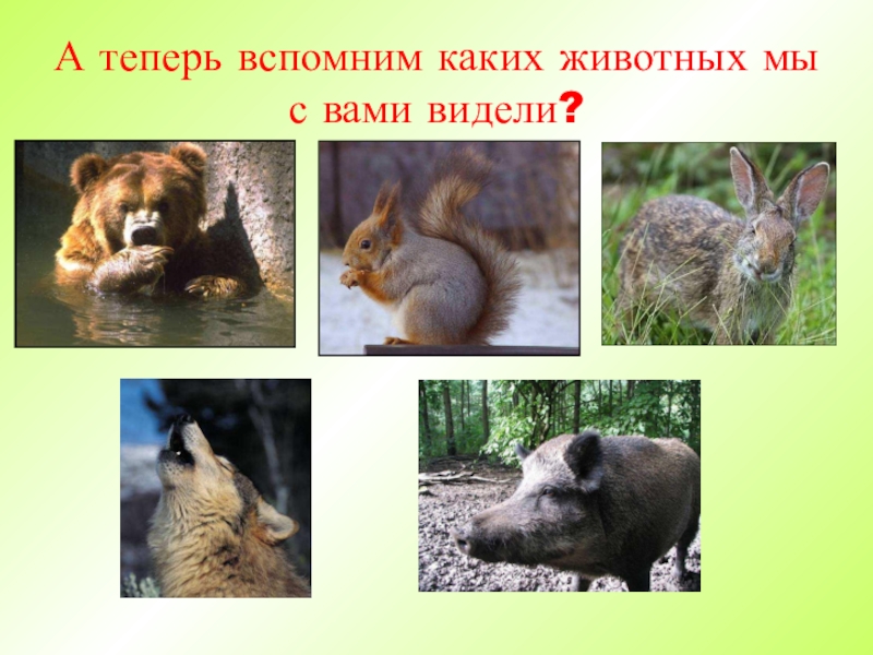 Слайд 14А теперь вспомним каких животных мы с вами видели?