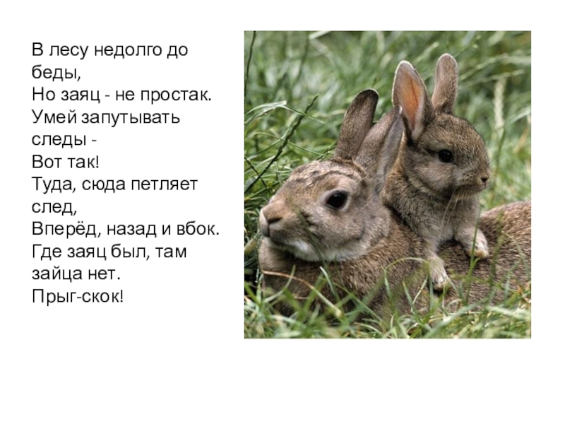 Слайд 3В лесу недолго до беды, Но заяц - не простак. Умей запутывать следы