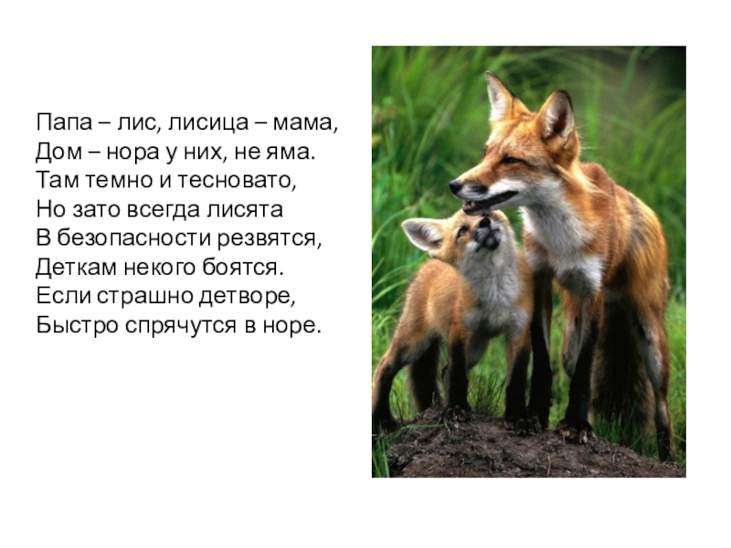 Папа – лис, лисица – мама, Дом – нора у них, не