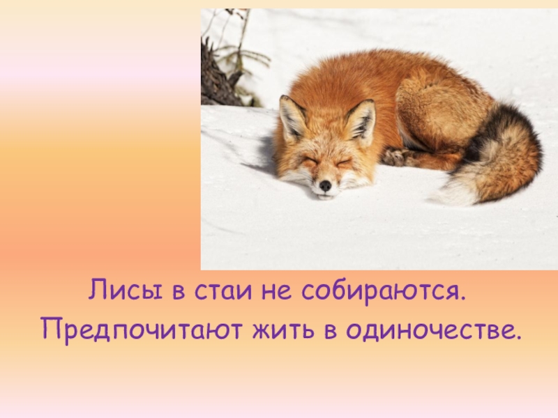 Слайд 14 Лисы в стаи не собираются.