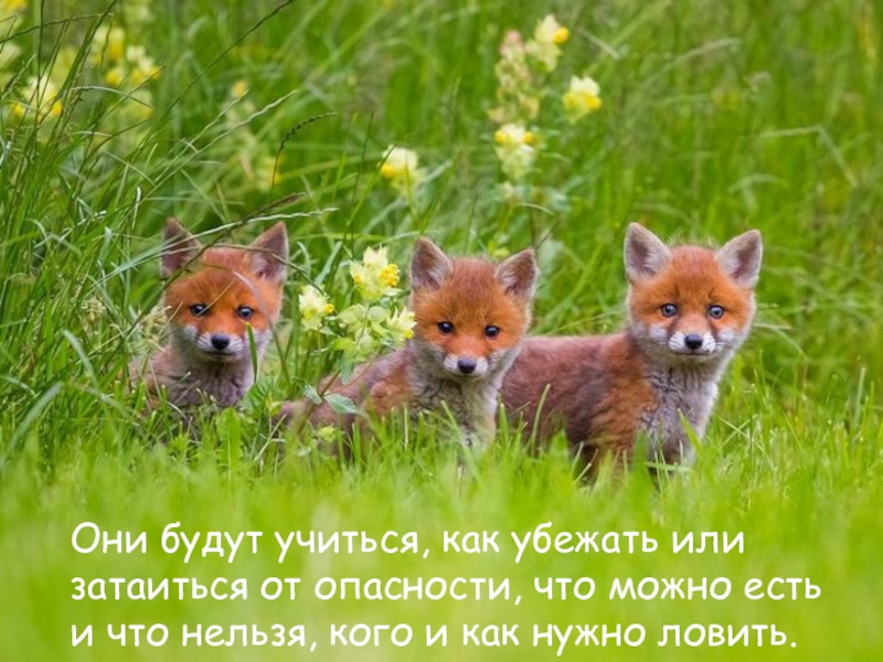 Слайд 13Они будут учиться, как убежать или затаиться от опасности, что можно