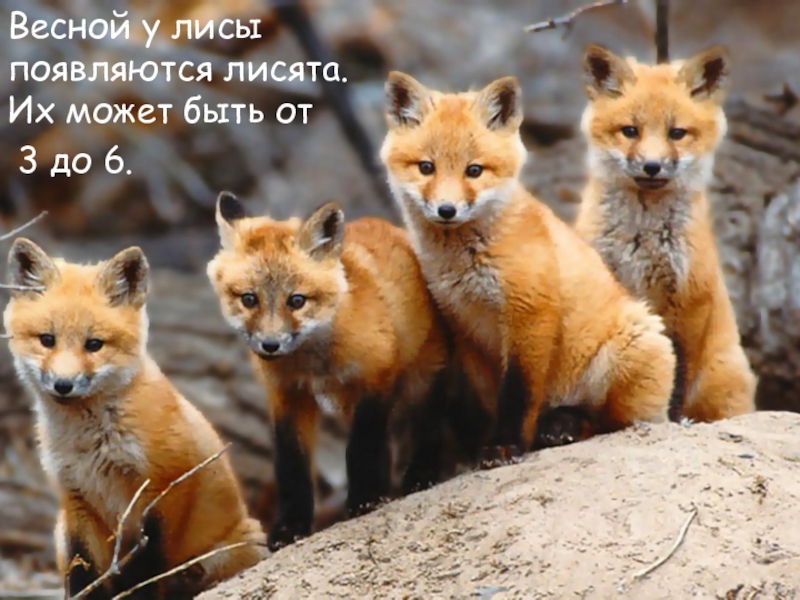 Слайд 10Весной у лисы появляются лисята. Их может быть от