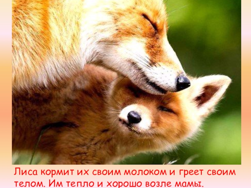 Слайд 11Лиса кормит их своим молоком и греет своим телом. Им тепло