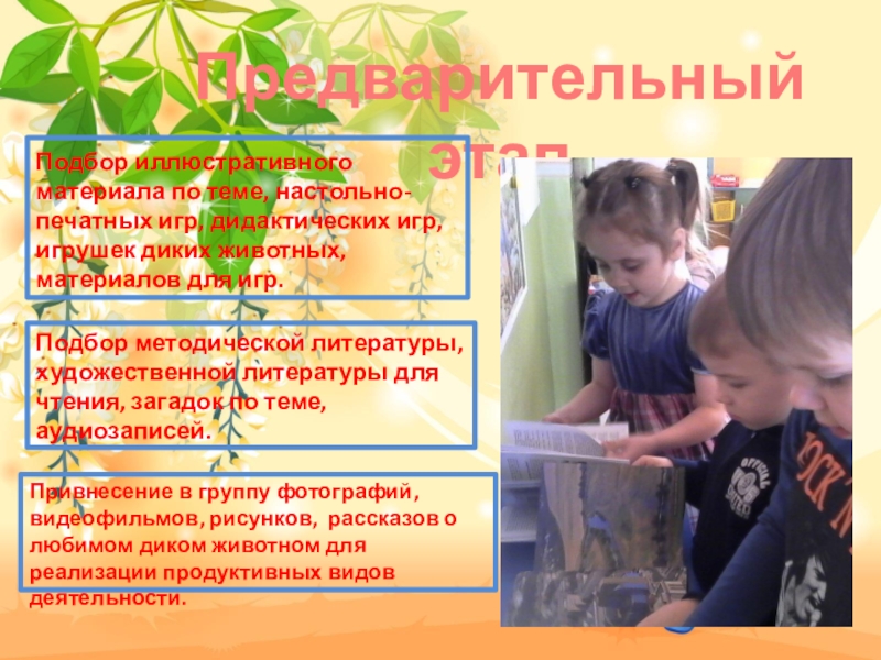 Привнесение в группу фотографий, видеофильмов, рисунков, рассказов о любимом диком животном для реализации продуктивных видов деятельности.