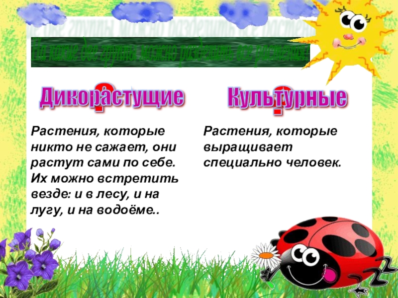 Растения, которые никто не сажает, они растут сами по себе. Их можно встретить везде: и в лесу, и на лугу, и на водоёме..