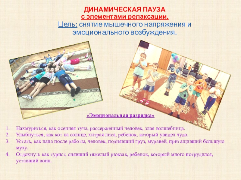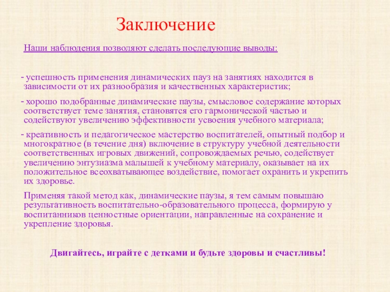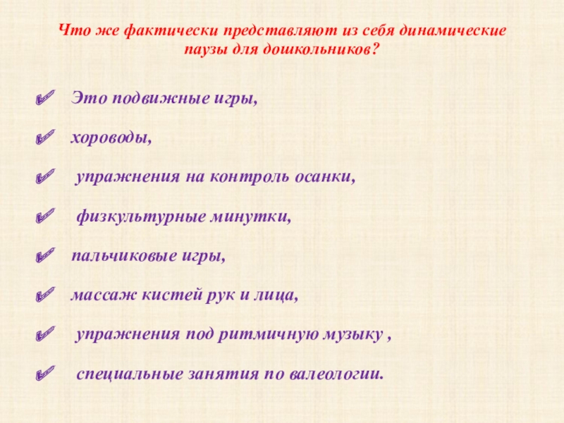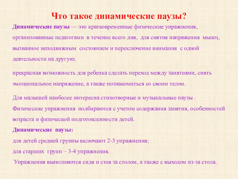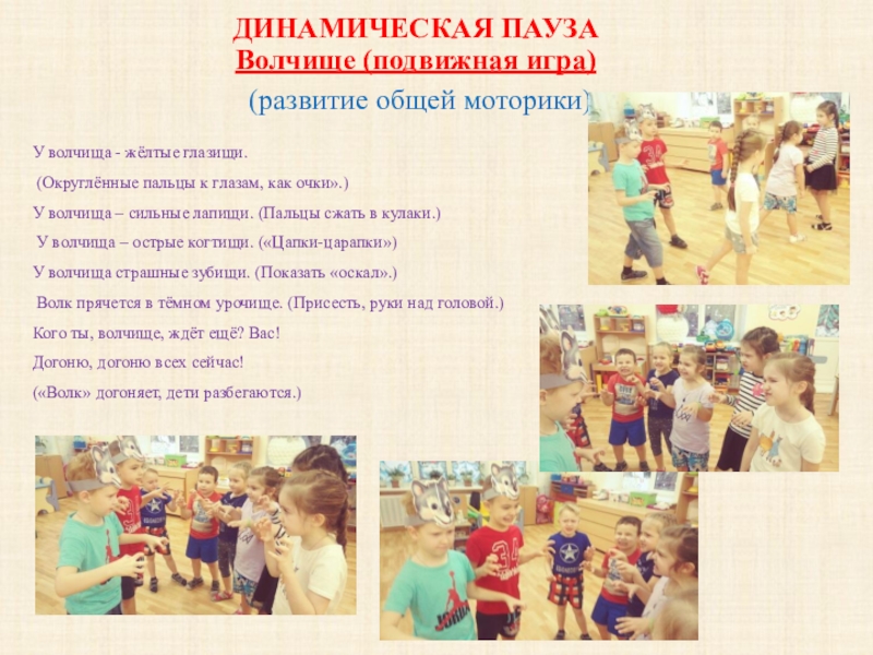 Динамические паузы для дошкольников непременно должны включать в себя пословицы и поговорки на разные темы, небольшие стихотворные тексты. Можно предложить детям декламировать вместе с воспитателем веселые стихи про зверюшек, можно сопровождать это разнообразными движениями.