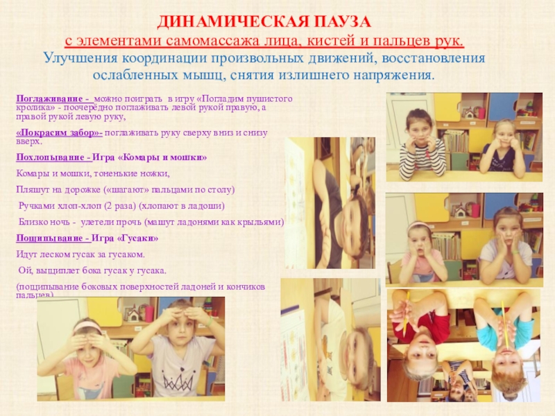 Поглаживание - можно поиграть в игру «Погладим пушистого кролика» - поочерёдно поглаживать левой рукой правую, а правой рукой левую руку,
