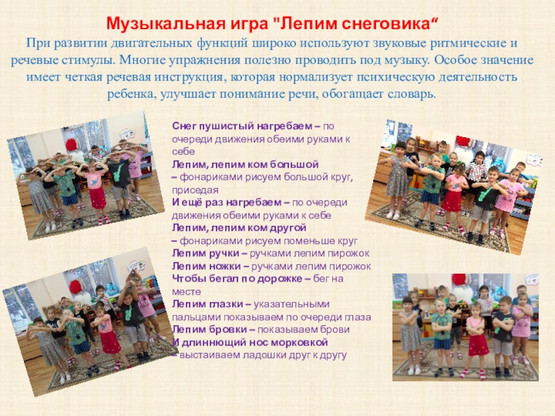 Снег пушистый нагребаем – по очереди движения обеими руками к себе