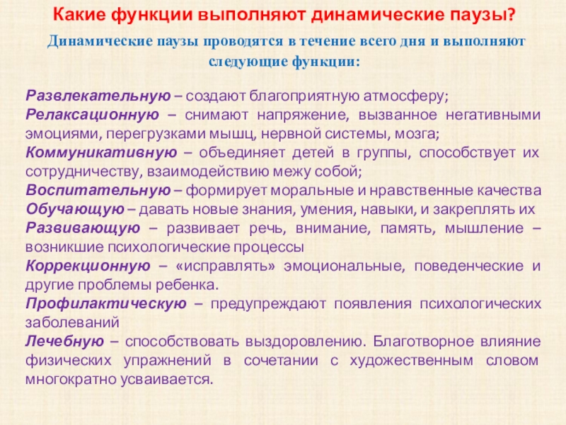 Коммуникативную – объединяет детей в группы, способствует их сотрудничеству, взаимодействию межу собой;
