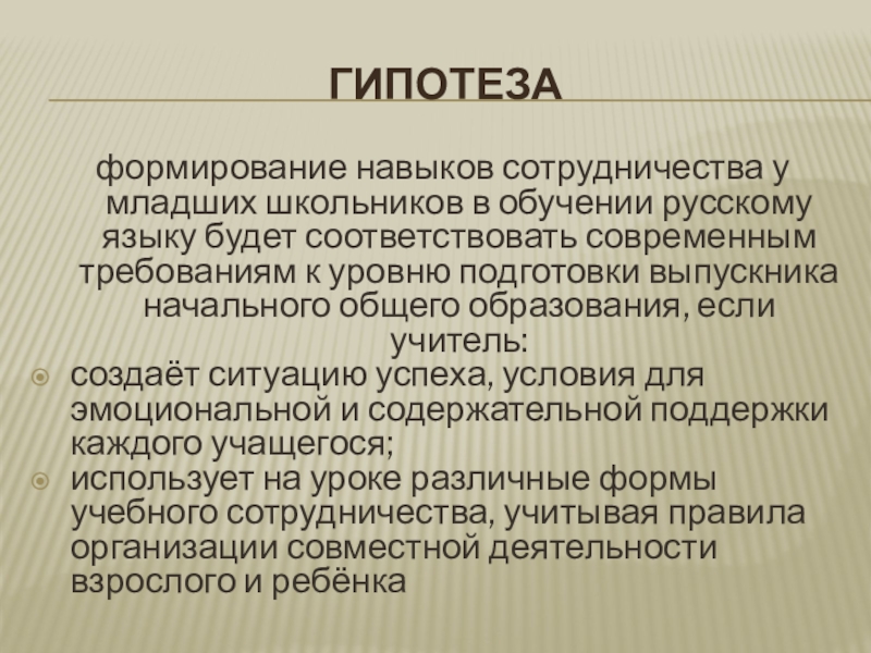 педагогические условия формирования навыков сотрудничества у младших школьников в обучении русскому языку
