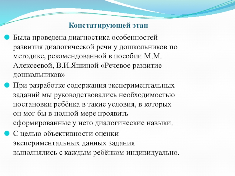 Была проведена диагностика особенностей развития диалогической речи у дошкольников по методике, рекомендованной в пособии М.М.Алексеевой, В.И.Яшиной «Речевое развитие дошкольников»