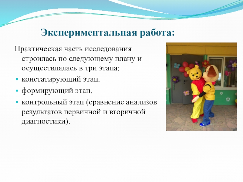 С целью объективности оценки экспериментальных данных задания выполнялись с каждым ребёнком индивидуально.