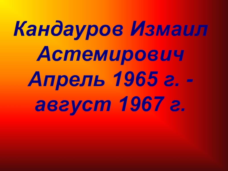 Кандауров Измаил АстемировичАпрель 1965 г. -август 1967 г.