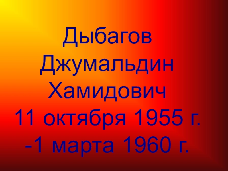Слайд 7 Дыбагов Джумальдин Хамидович 11 октября 1955 г. -1 марта 1960 г.