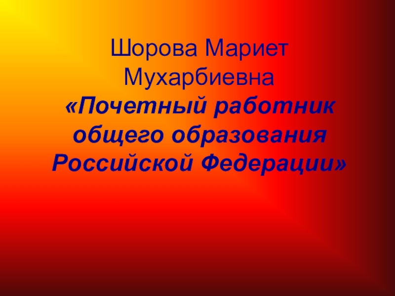 Шорова Мариет Мухарбиевна «Почетный работник общего образования Российской Федерации»