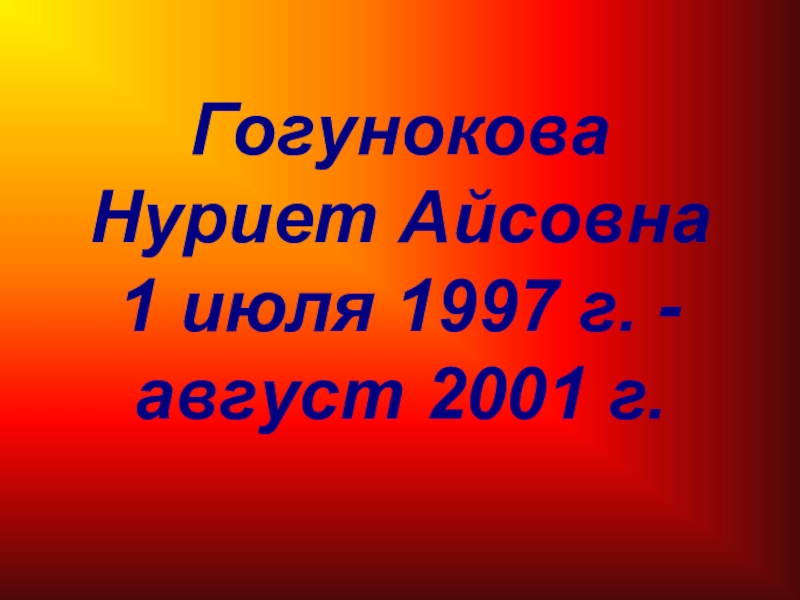 Слайд 15 Гогунокова Нуриет Айсовна 1 июля 1997 г. - август 2001 г.