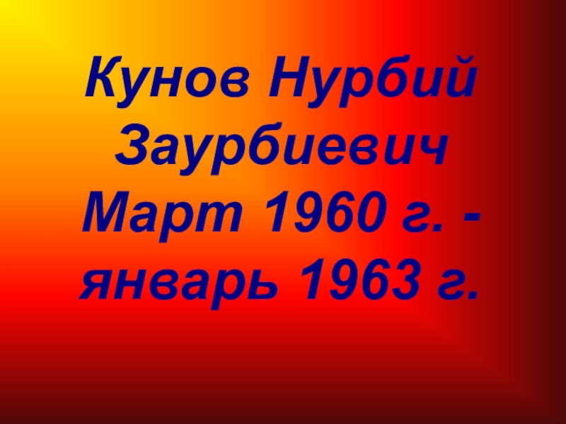 Кунов Нурбий ЗаурбиевичМарт 1960 г. - январь 1963 г.