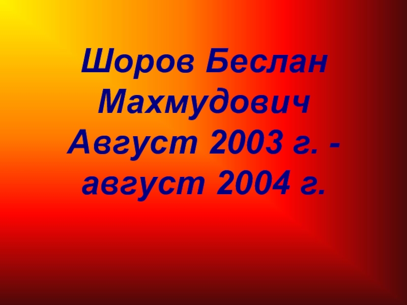 Слайд 17 Шоров Беслан Махмудович Август 2003 г. - август 2004 г.