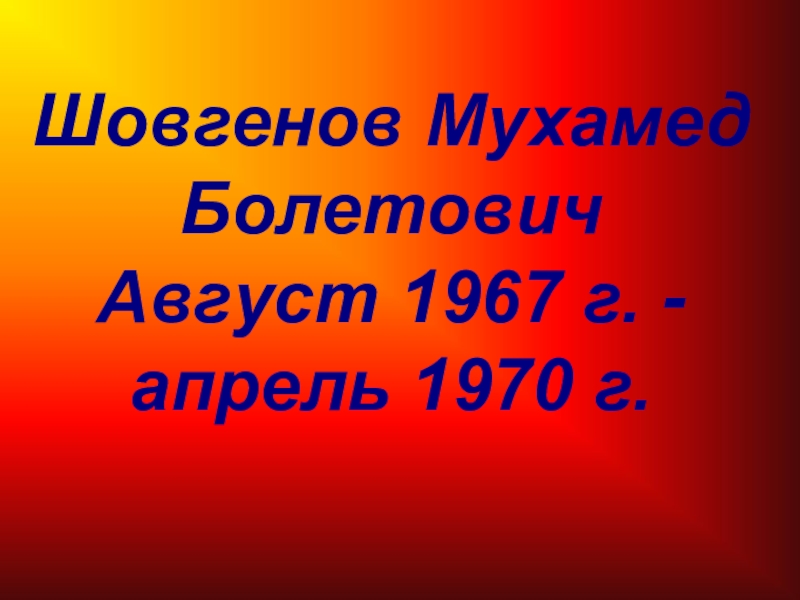 Шовгенов Мухамед Болетович  Август 1967 г. - апрель 1970 г.