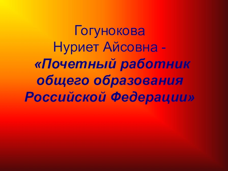 Гогунокова Нуриет Айсовна - «Почетный работник общего образования Российской Федерации»