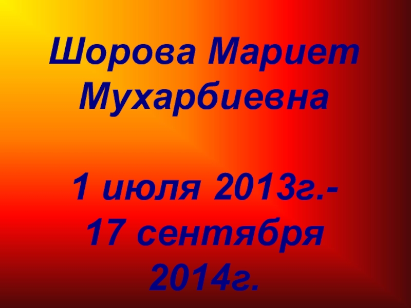 Слайд 20 Шорова Мариет Мухарбиевна 1 июля 2013г.- 17 сентября 2014г.