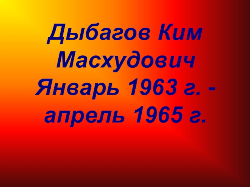 Дыбагов Ким Масхудович Январь 1963 г. -апрель 1965 г.