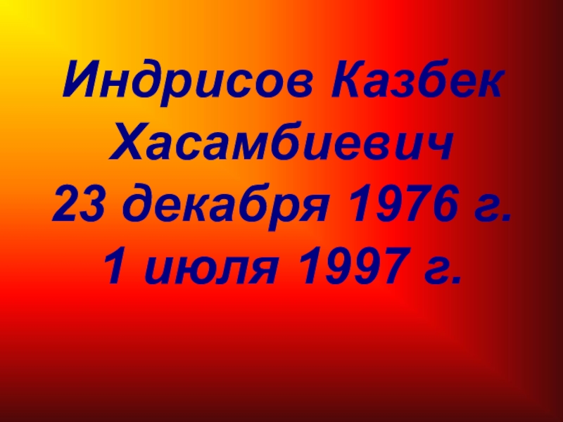 Индрисов Казбек Хасамбиевич 23 декабря 1976 г. 1 июля 1997 г.