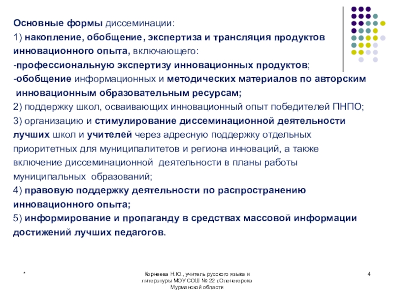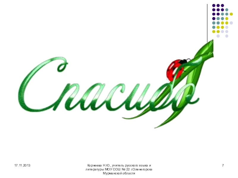 Корнеева Н.Ю., учитель русского языка и литературы МОУ СОШ № 22 г.Оленегорска Мурманской области