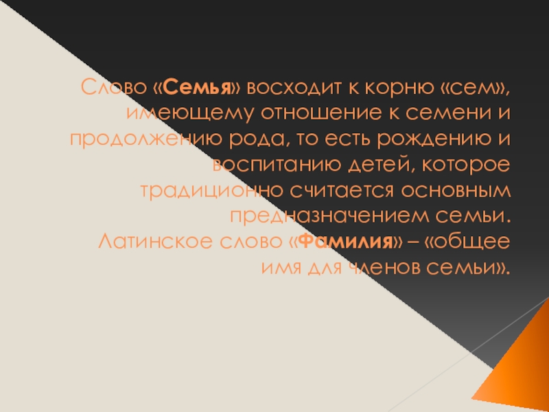 Слайд 4Слово «Семья» восходит к корню «сем», имеющему отношение к семени и