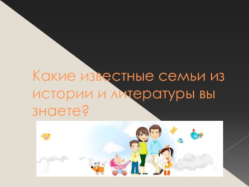 Слайд 5Какие известные семьи из истории и литературы вы знаете?