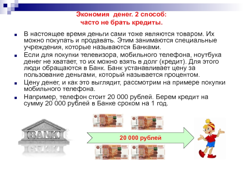 Таким образом, деньги тоже имеют свою цену. Обычно их стоимость измеряется процентами, когда берешь кредит в Банке.