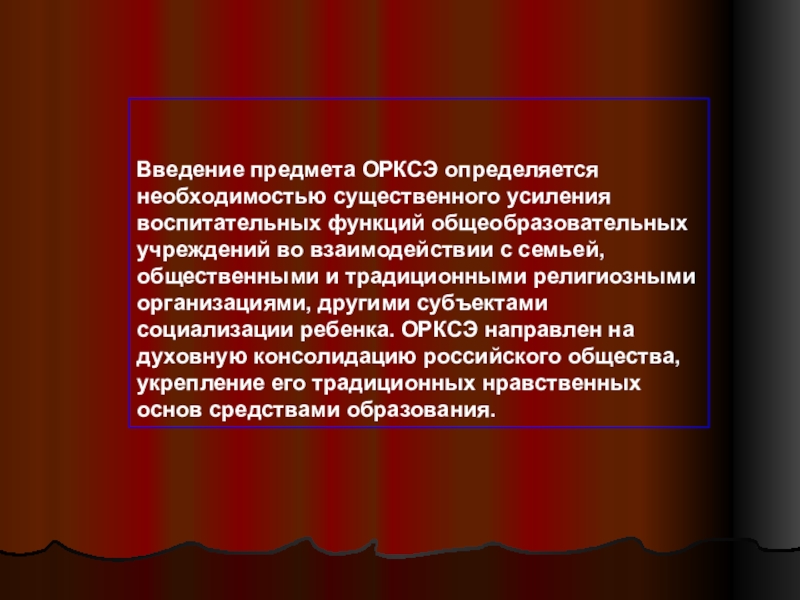 Введение предмета ОРКСЭ определяется необходимостью существенного усиления воспитательных функций общеобразовательных учреждений