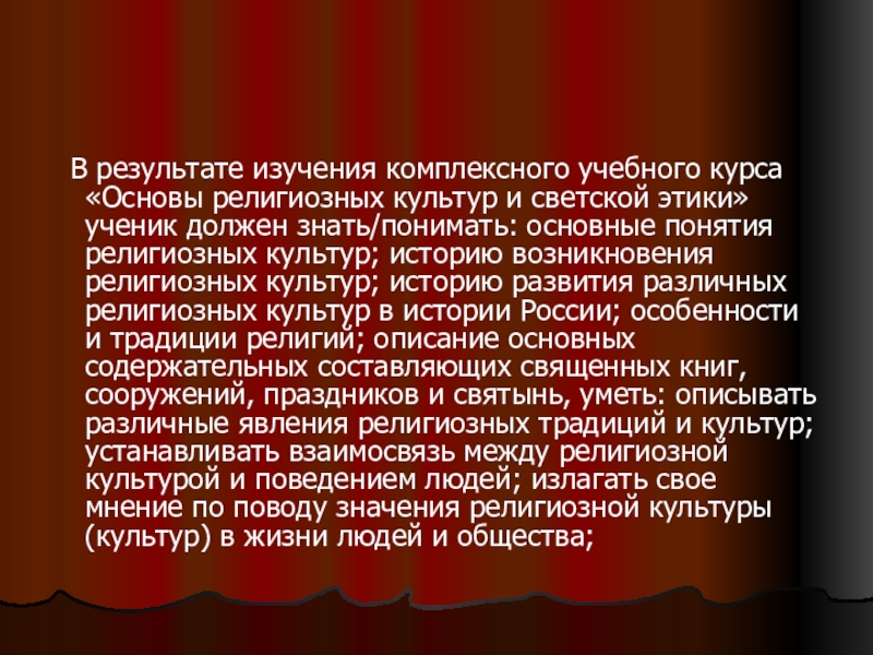 В результате изучения комплексного учебного курса «Основы религиозных культур и