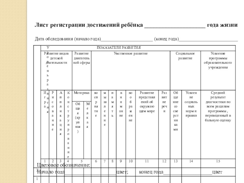 Начало года___________________цвет; конец года__________________цвет