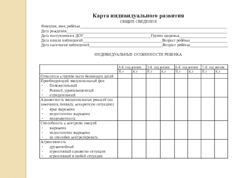 Динамика состояния ребёнка