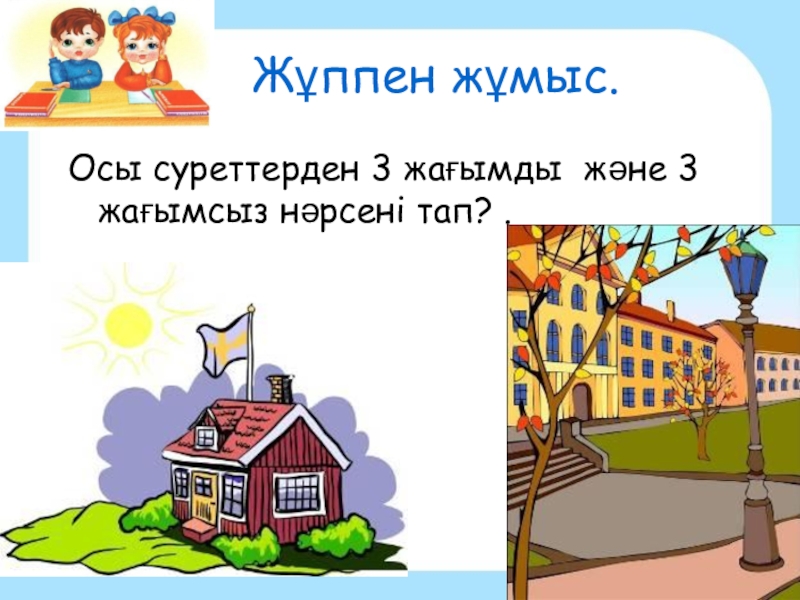 Жұппен жұмыс.Осы суреттерден 3 жағымды және 3 жағымсыз нәрсені тап? .