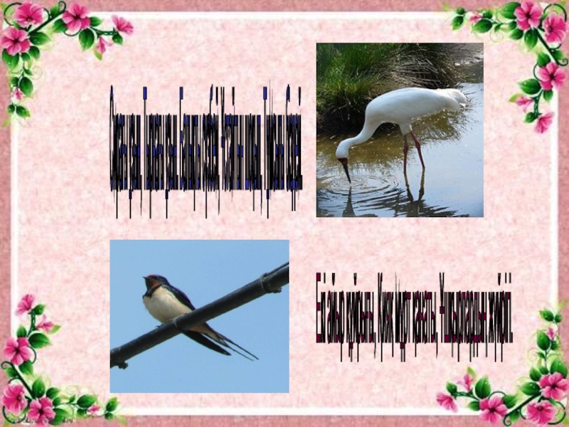 Сирағы ұзын, Тырнағы ұзын. Балықты сүзбей, Ұстайтын шоқып, Тұмсығы бiздей.