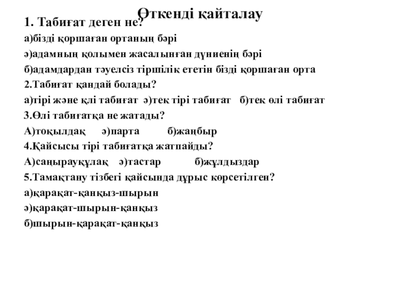 меңгерту; есте сақтау және ойлау қабілеттерін дамыту.