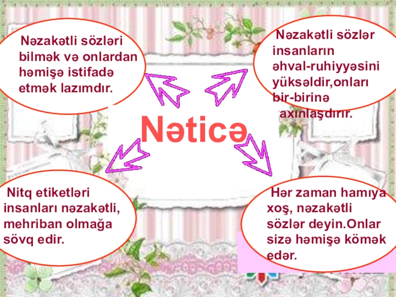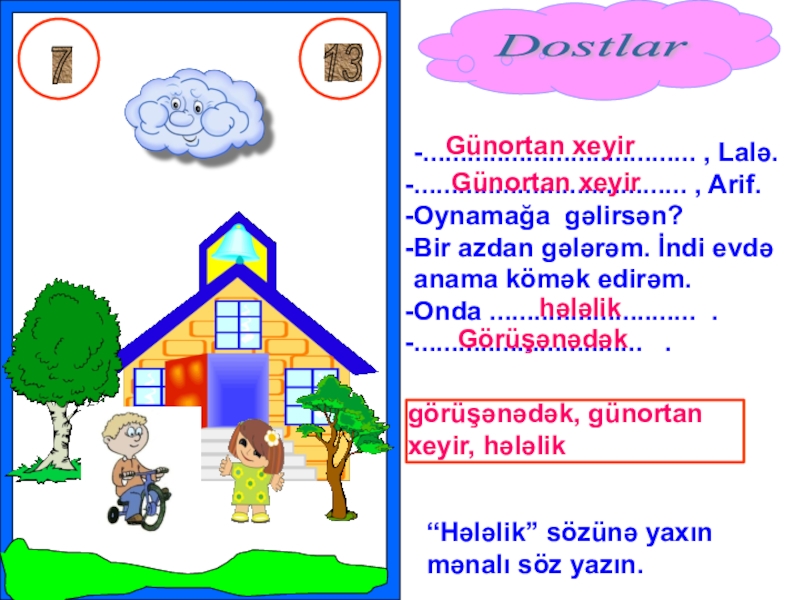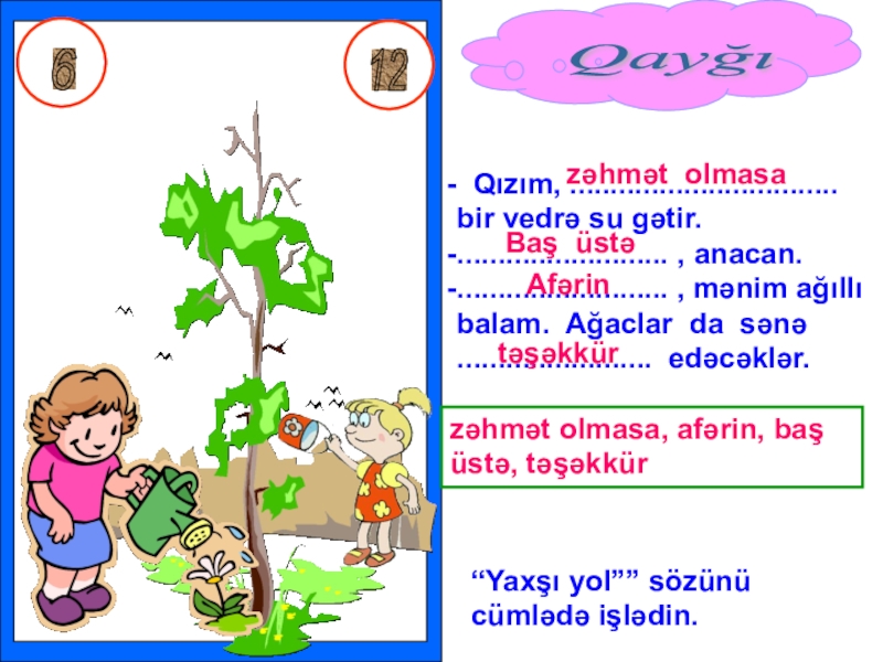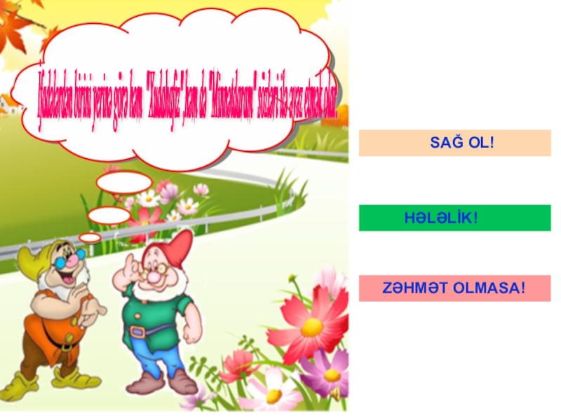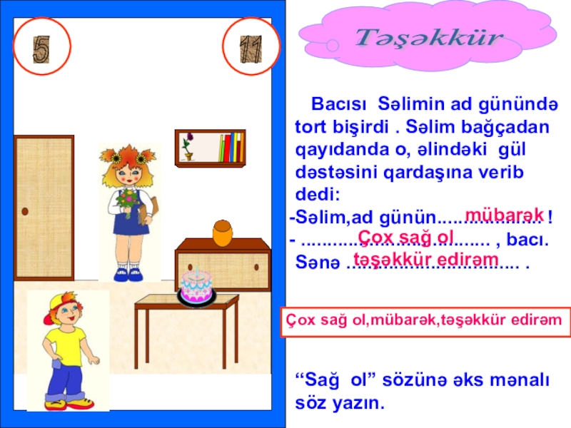 Resurslar: İş vərəqləri,şəkillər, komputer,proyektor,