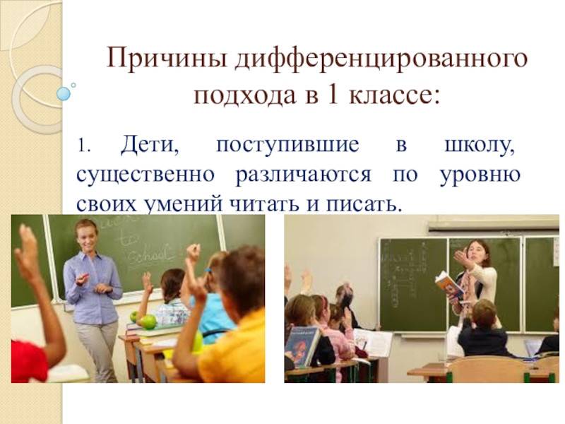 Слайд 14Причины дифференцированного подхода в 1 классе: