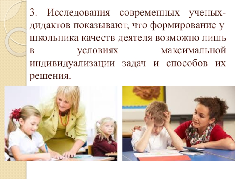 Слайд 163. Исследования современных ученых-дидактов показывают, что формирование у школьника качеств деятеля