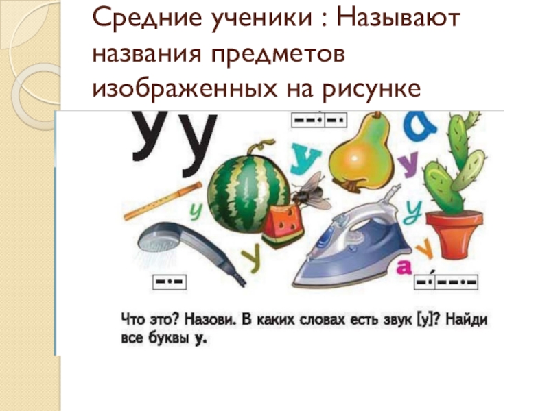 Слайд 40Средние ученики : Называют названия предметов изображенных на рисунке