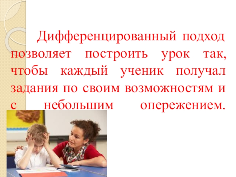 Слайд 28 Дифференцированный подход позволяет построить урок так, чтобы каждый