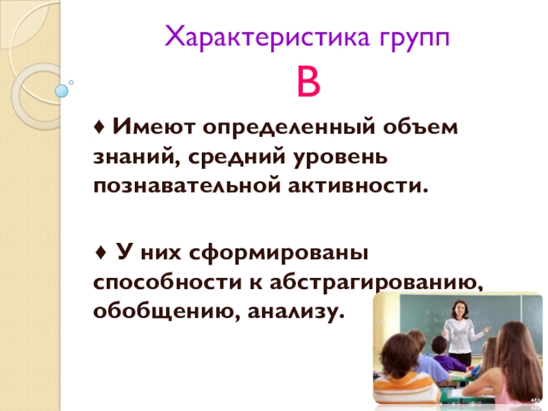 ♦ Имеют определенный объем знаний, средний уровень познавательной активности.