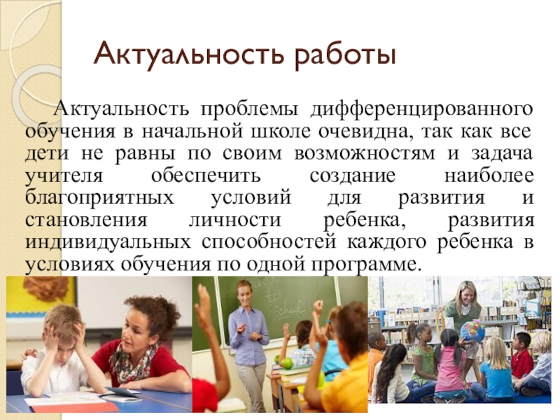 Актуальность проблемы дифференцированного обучения в начальной школе очевидна, так как