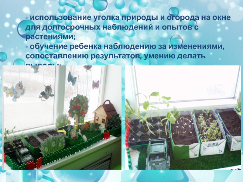 - использование уголка природы и огорода на окне для долгосрочных наблюдений