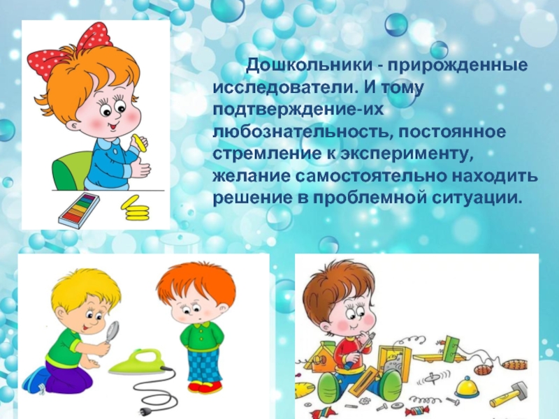 Слайд 3 Дошкольники - прирожденные исследователи. И тому подтверждение-их
