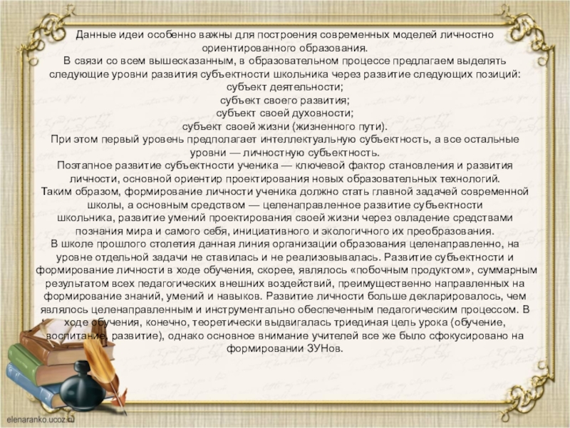 Слайд 24Данные идеи особенно важны для построения современных моделей личностно ориентированного образования.